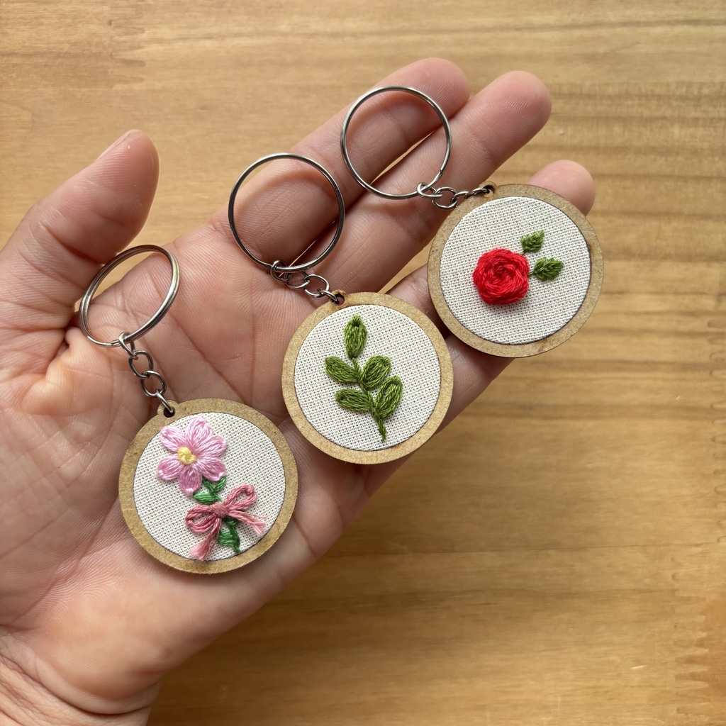- Pingente de mini bastidor com tecido de algodão bordado;